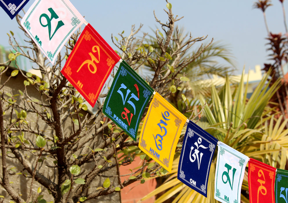 Om Mani Velvet Indoor Prayer Flags-Medium