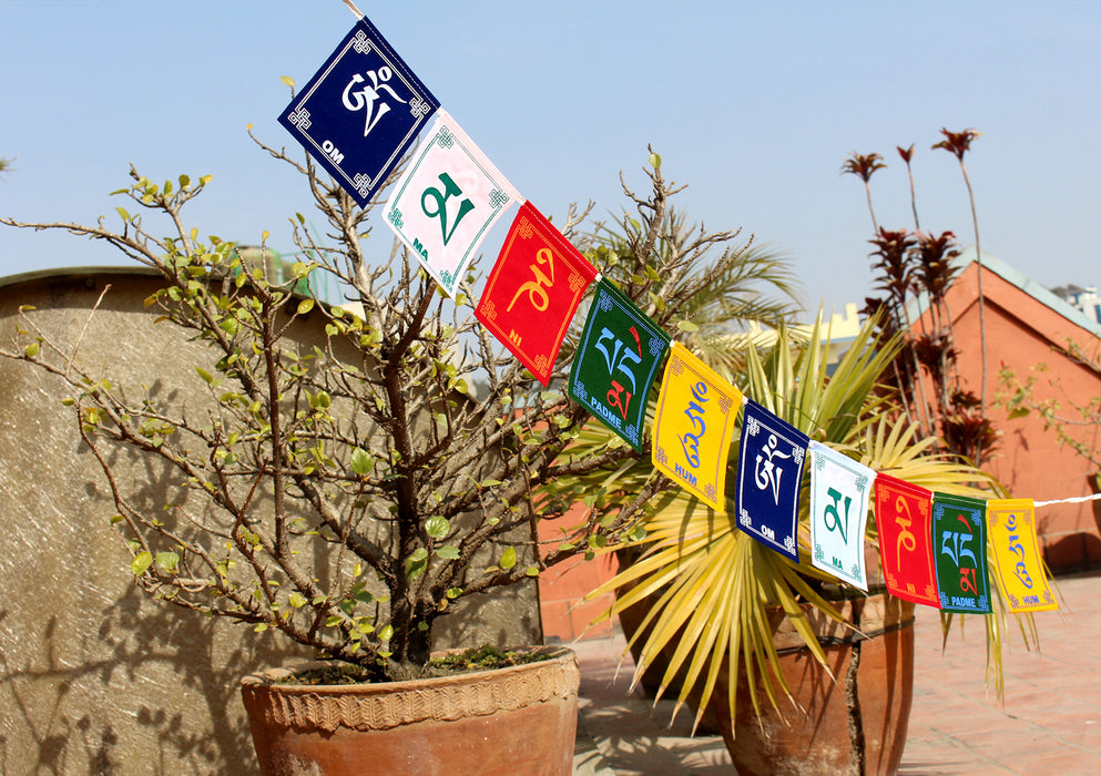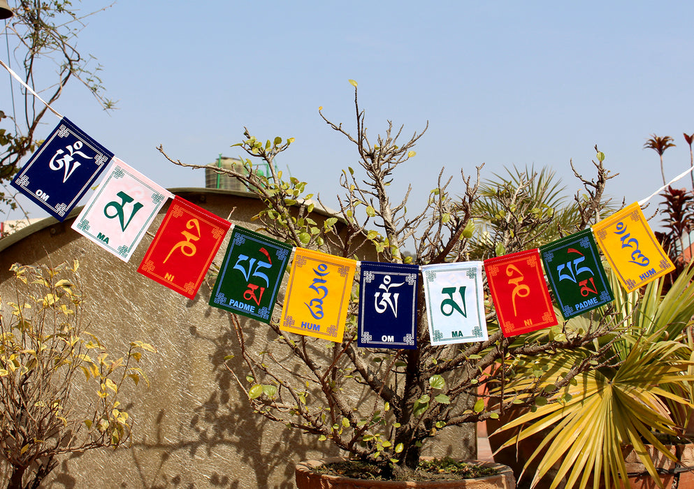 These Tibetan Prayer Flags are made of Velvet and are printed with Om Mani Padme Hum Mantra. These Prayer Flags are the medium ones in the variation and are best suited for small altars or indoors. It can be hanged in the frames of deities or you can find other uses and placements for it.
