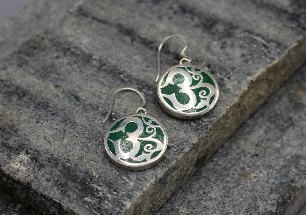 This earrings is made of silver and finely hand carved in Nepal. The silver earrings is carved beautifully with Hindu Om.