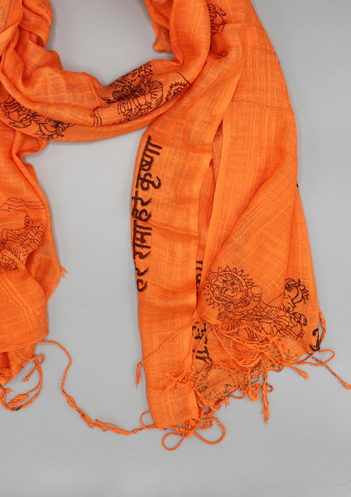 Orange Hare Ram Hare Krishna Hindu Deities Printed Cotton Shawl