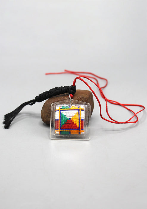 This is a Tibetan protection amulet. This amulet is also known as the protector of pandemic diseases. It is believed that amulet protects against evil disease or unhappiness. The charm amulet has a mantra paper folded into many folds and intricately woven by colorful nylon thread in a mandala outline.