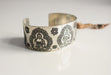 Pancha Buddha Carved White Metal Healing Cuff Bangle
