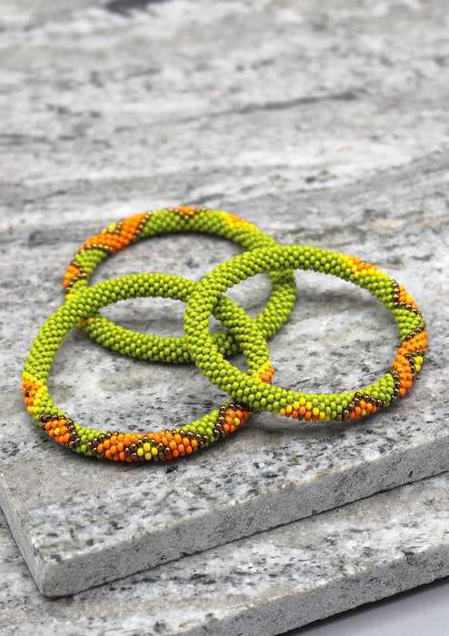 These fairly traded glass beads bracelet are meticulously crocheted by our women artists. Our woman artist carefully hand-strung these Roll On bracelet to give them the best shape and design.