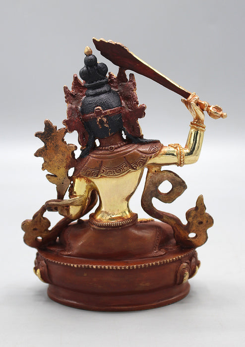 Partly Gold Painted Copper Manjushree Statue