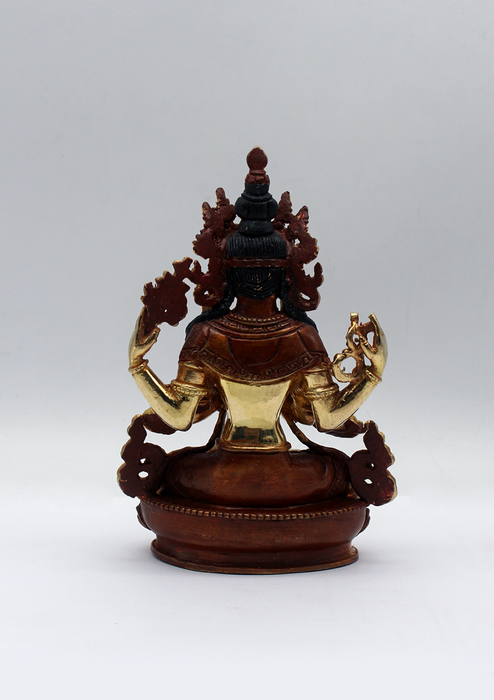 Partly Gold Plated Chenrezig Statue 5.5" H