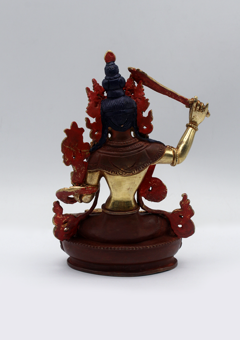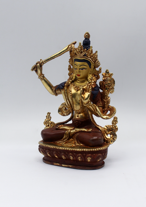 Partly Gold Plated Copper Manjushri Statue 5.5"H