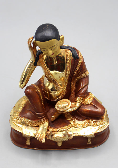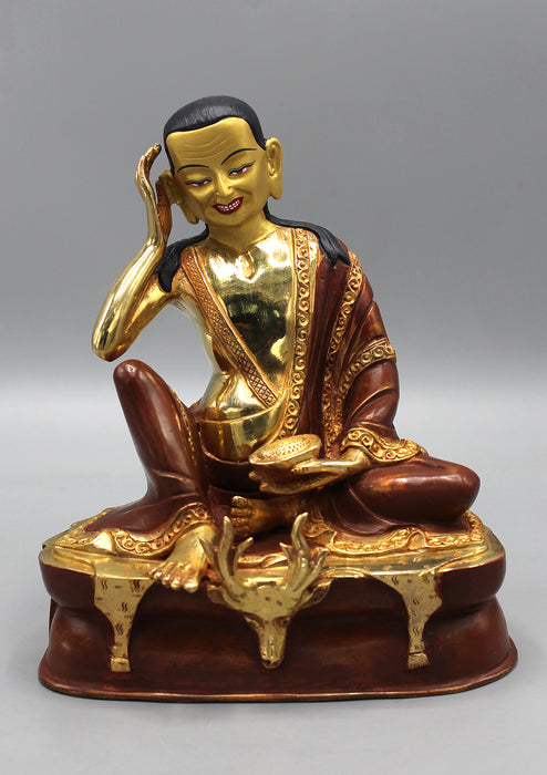 Partly Gold Plated Copper Milarepa Statue