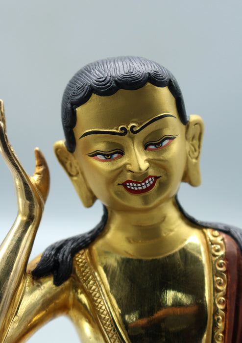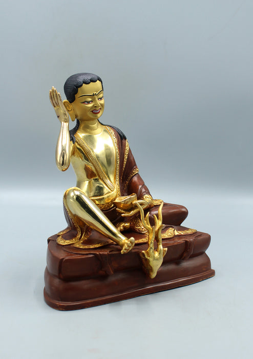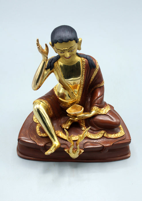 Partly Gold Plated Copper Milarepa Statue 7.5"