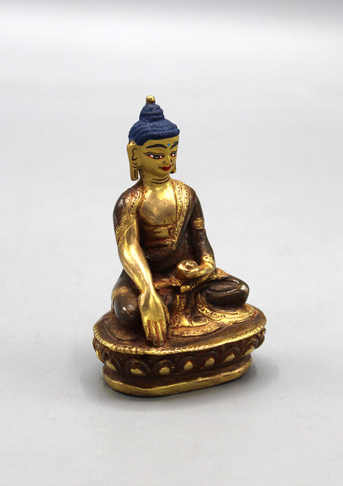 Partly Gold Plated Copper Shakyamuni Buddha Statue 3"