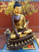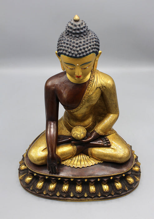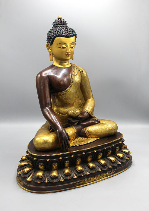 Partly Gold Plated Shakyamuni Buddha Statue in Monastic Robe With Floral Motifs
