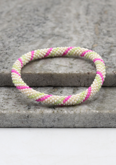 Pink Green Beads Nepalese Roll On Bracelet has been meticulously crocheted by our women artists. Our women artists have carefully hand-strung this fairly traded Roll On bracelet.