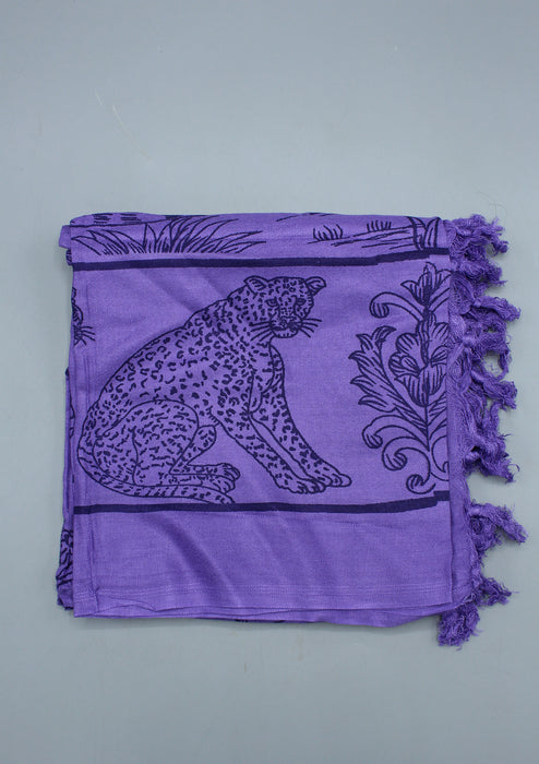Pure Cotton Wildlife Printed Purple Shawl with Furka