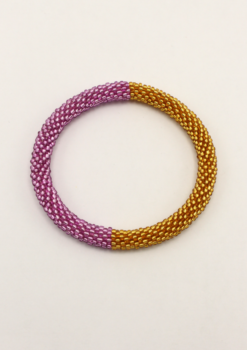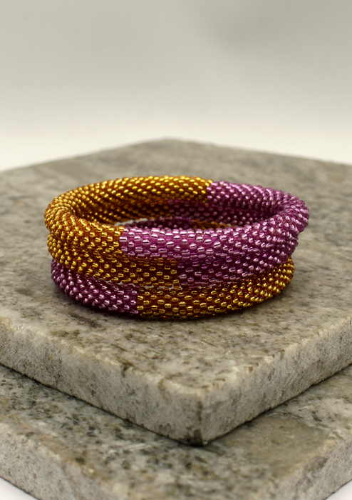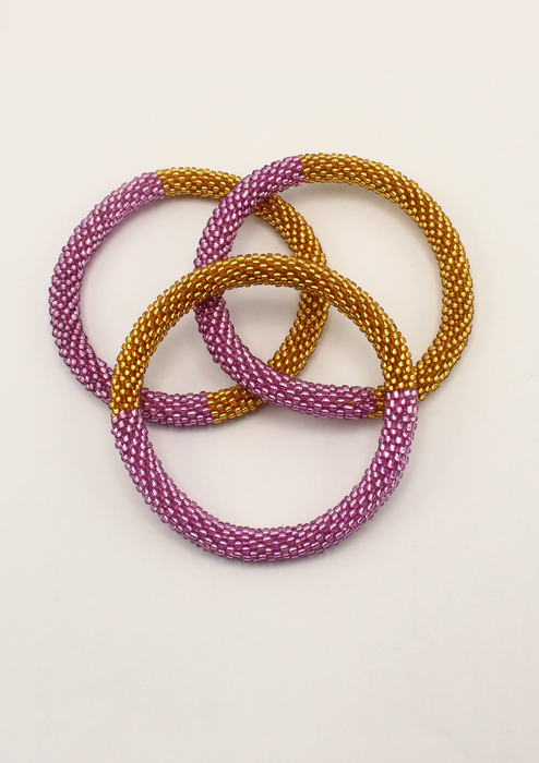 These fairly traded glass beads bracelet are meticulously crocheted by our women artists. Our woman artist carefully hand-strung these Roll On bracelet to give them the best shape and design.