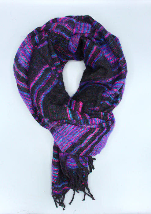 This is a beautifully hand weaved Yak Wool shawl from Nepal. The shawl is in Black and Purple stripe and the combination looks beautiful. This shawl is soft and luxurious to touch and can be worn as a wrap, a throw or a shawl.