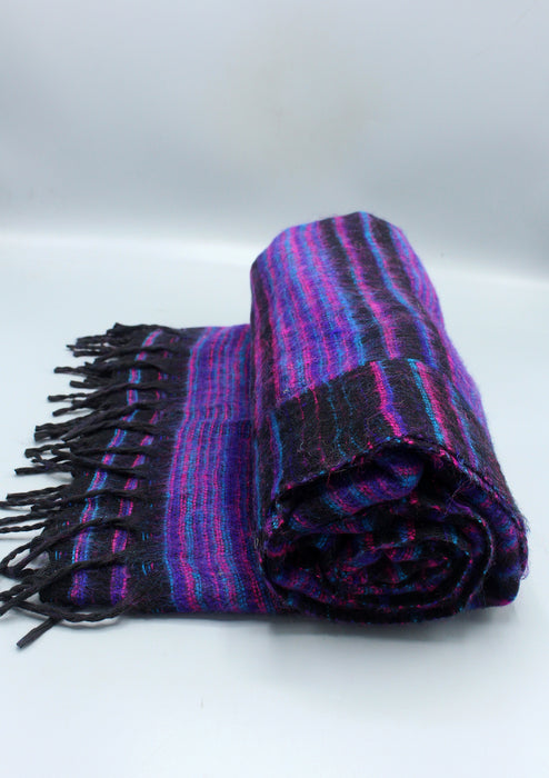 Purple and Black Striped Large Yak Wool Shawl