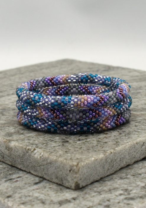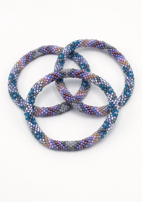 These fairly traded glass beads bracelet are meticulously crocheted by our women artists. Our woman artist carefully hand-strung these Roll On bracelet to give them the best shape and design.