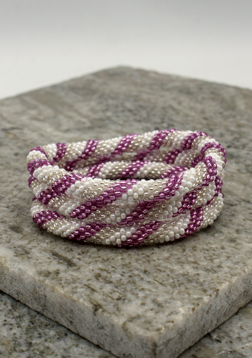 These fairly traded glass beads bracelet are meticulously crocheted by our women artists. Our woman artist carefully hand-strung these Roll On bracelet to give them the best shape and design.