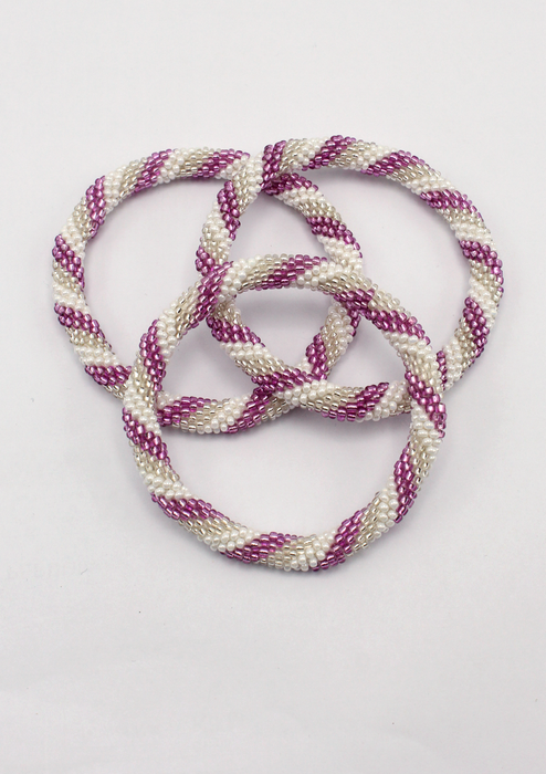 Purple Silver Swirl Nepalese Roll on Beads Bracelet
