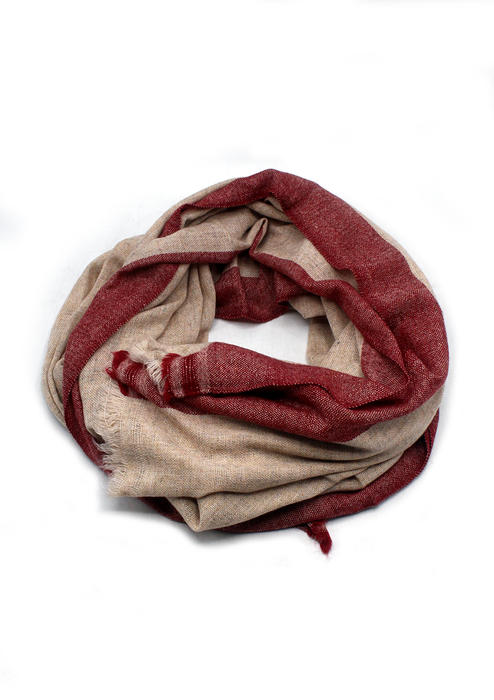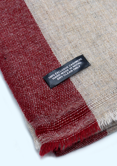 This wool mix cashmere shawl is luxurious and soft shawl handmade in Nepal. The maroon border of the shawl looks beautiful. This shawl can be wear with any casual dress. Cashmere shawl are the most finest and extremely soft. This can be gifted to the most beloved person to make them feel special.