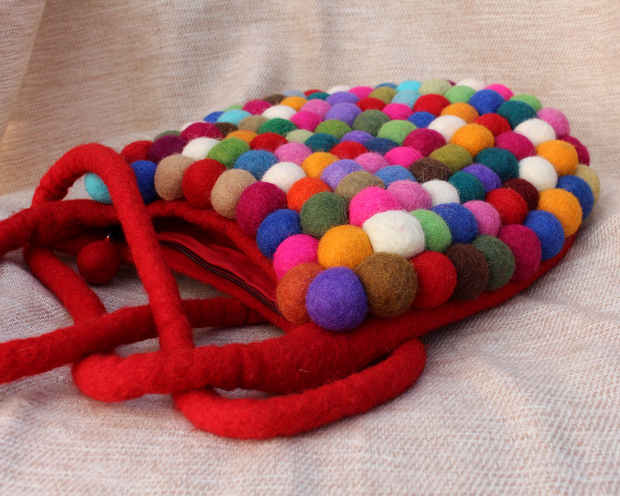 The felt ball bags are everyday bags which can be used to put notebooks, small makeup kits, cell phones, keys, chains and other necessary small items. These bags can be worn with any apparel and is all seasons bag. The bags are durable which will last for a long time. It is a fashion accessory and will rarely be seen on the streets making them very unique and chic.