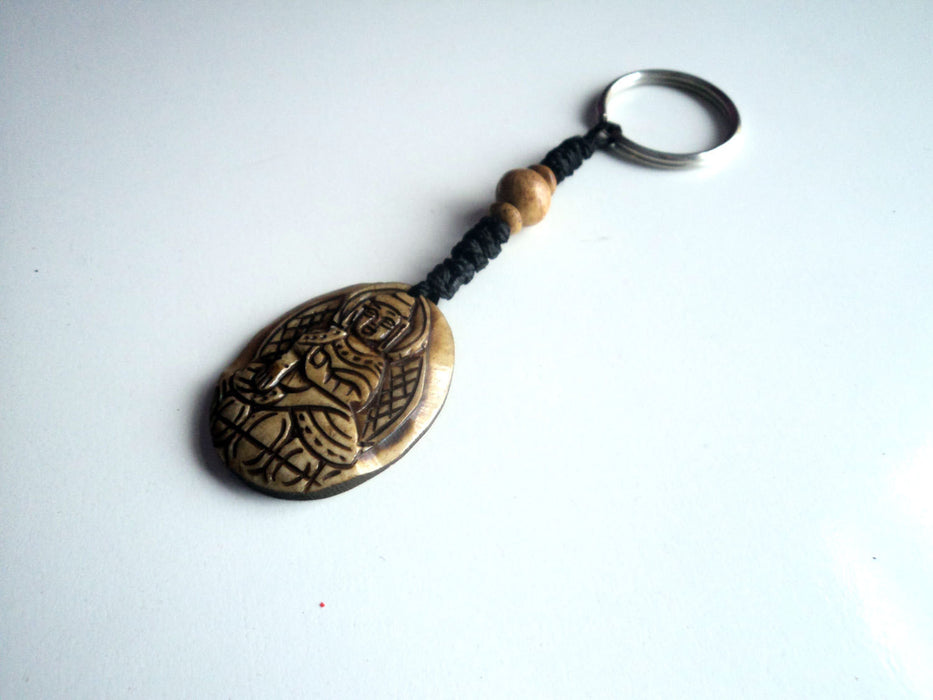 These are keychains with the pendants of Buddha, Ganesh and Bhairab. These water buffalo Bone key chains are handmade in Nepal by the local tribe called Tamangs in the Kathmandu Valley. The intricate details and the soft hand use to finish the product in the shape of a various deities is simply a master crafts.