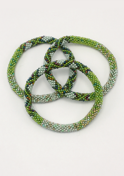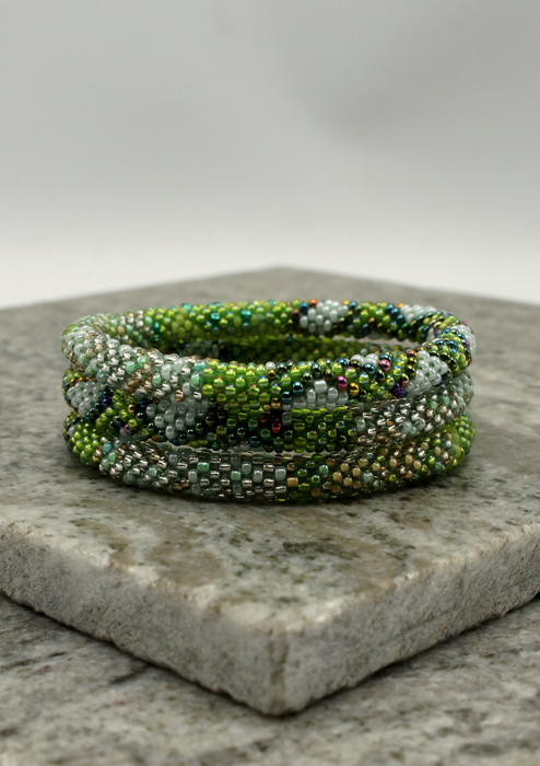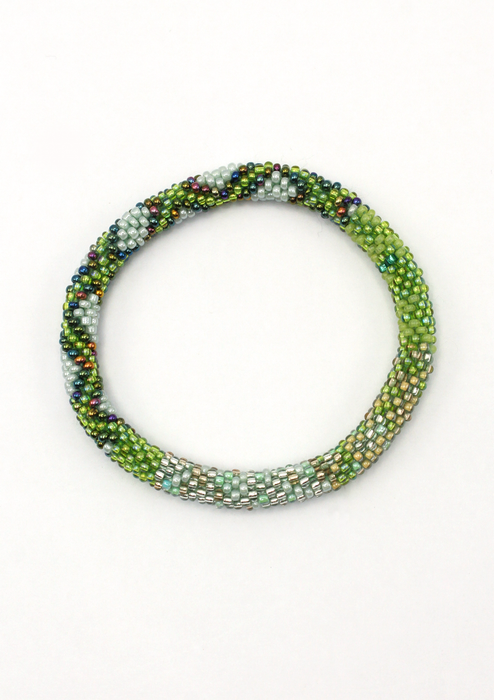 These fairly traded glass beads bracelet are meticulously crocheted by our women artists. Our woman artist carefully hand-strung these Roll On bracelet to give them the best shape and design.