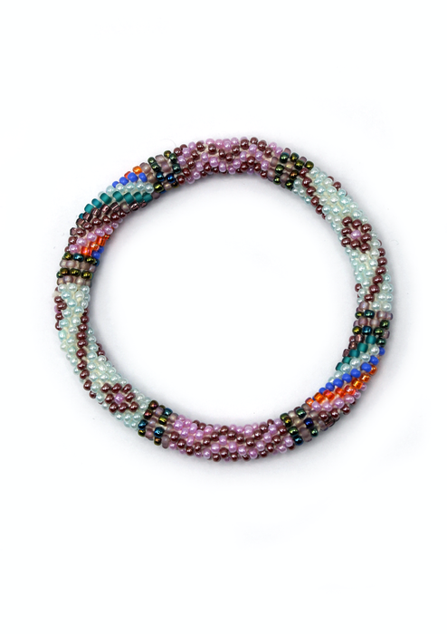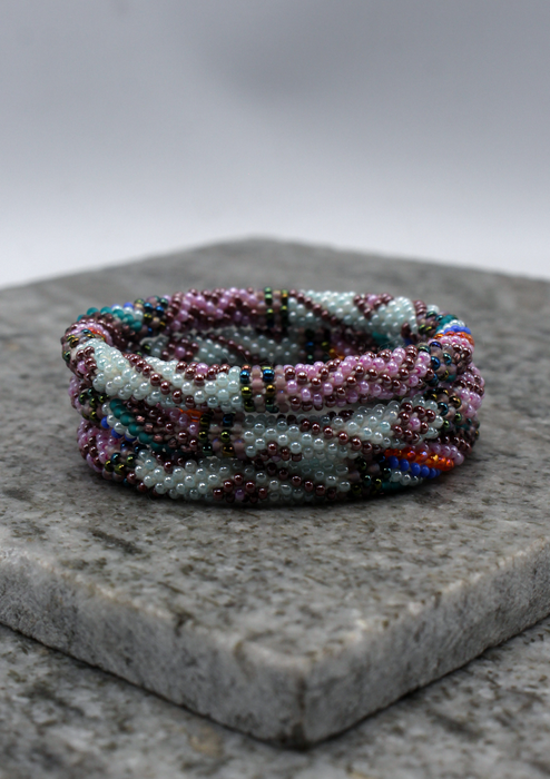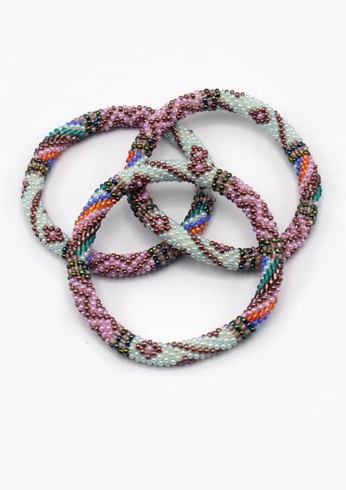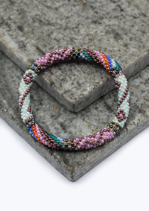 These fairly traded glass beads bracelet are meticulously crocheted by our women artists. Our woman artist carefully hand-strung these Roll On bracelet to give them the best shape and design.