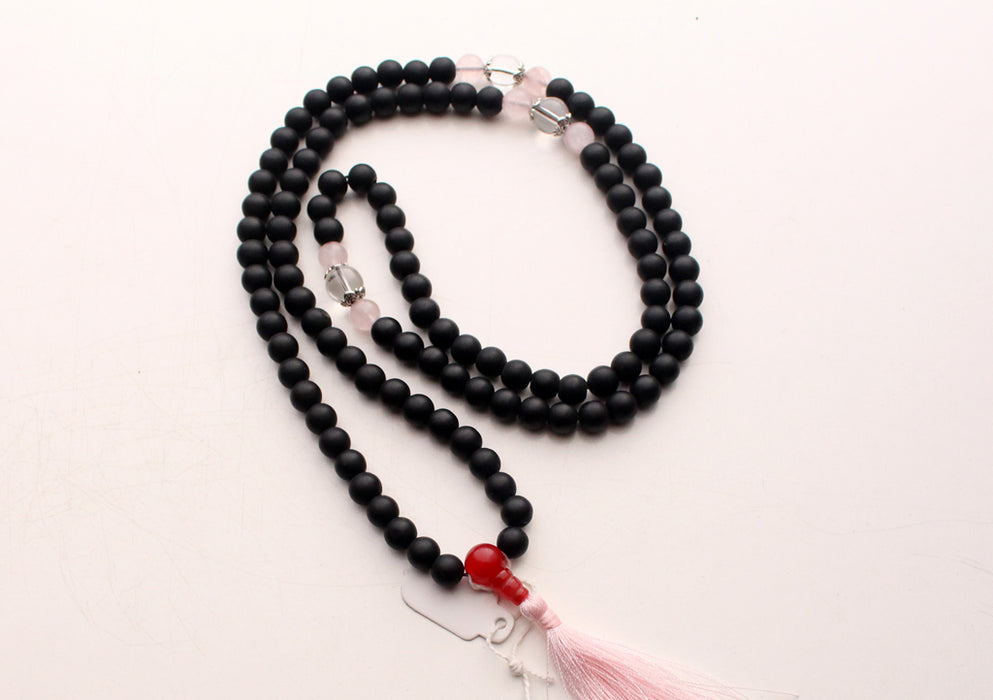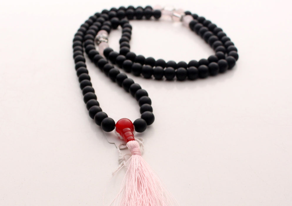 Rose Quartz Spacer 108 Black Beads Prayer Mala