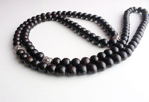This is a beautiful 108 Rosewood Prayer mala strung together in a nylon thread with Three White Metal Buddha Face Bead Spacer and a Guru Bead. The japa mala looks very catchy and has all the qualities of being called a unique, beautiful and powerful prayer bead.