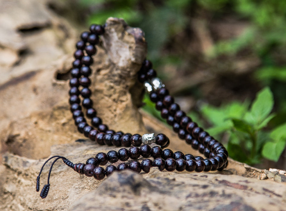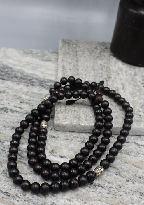 Rosewood Tibetan Prayer Mala with Buddha Spacer