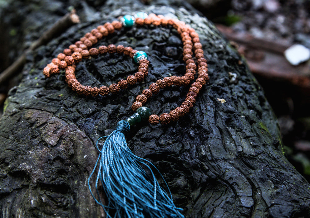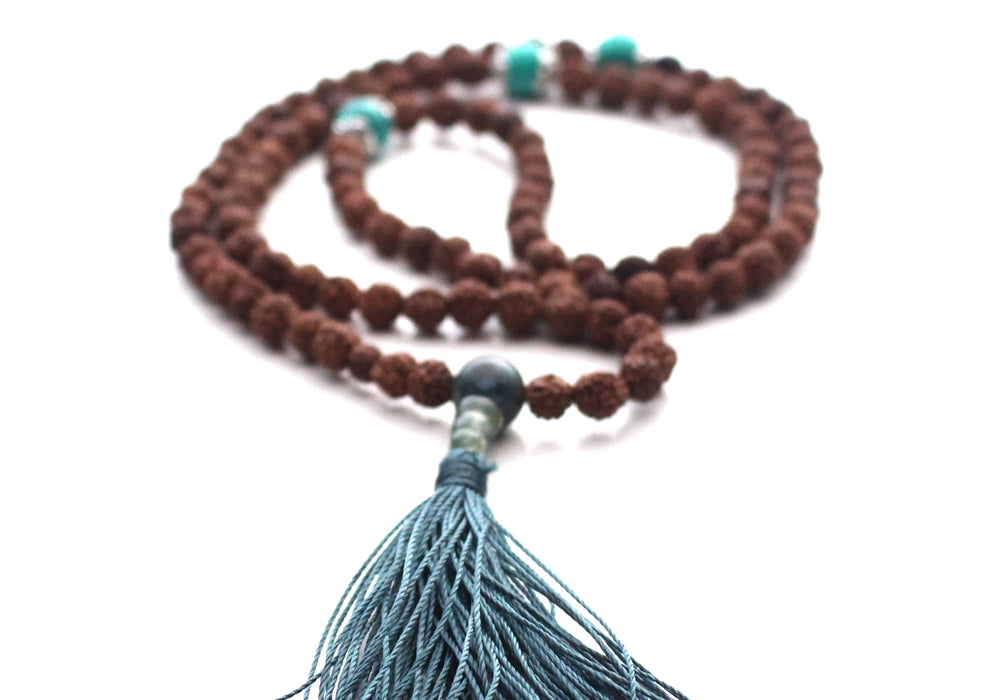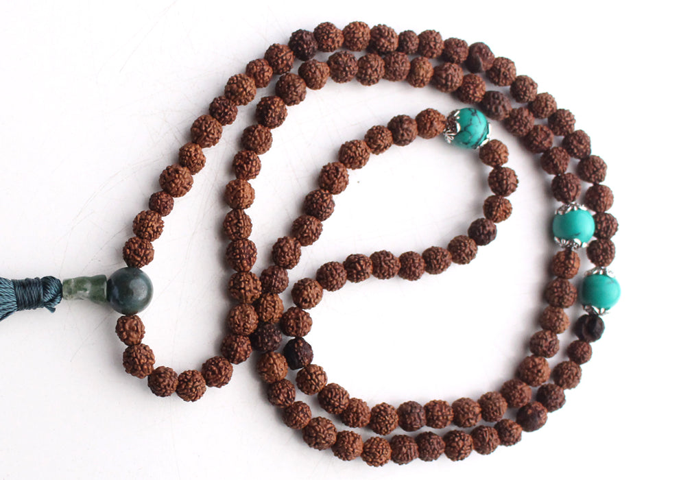 Rudraksha Mala for Meditation and Yoga With Turquoise Spacer