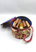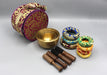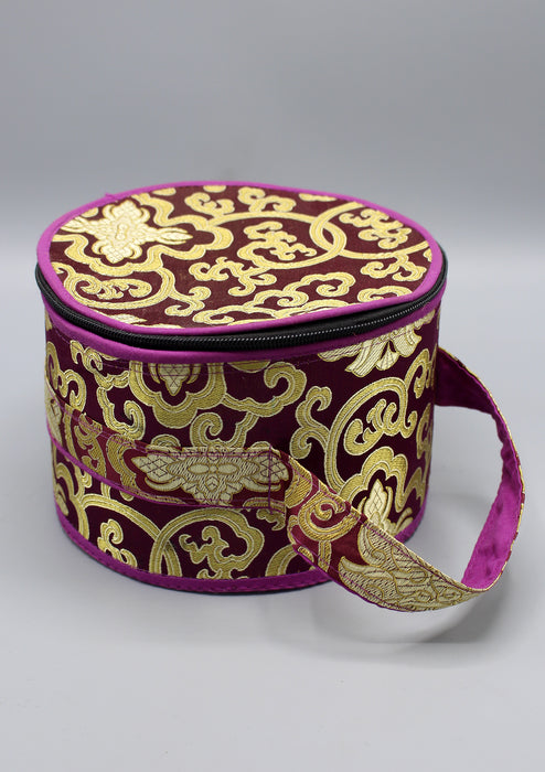 This Singing bowl comes in a brocade bag with cushion and mallet.