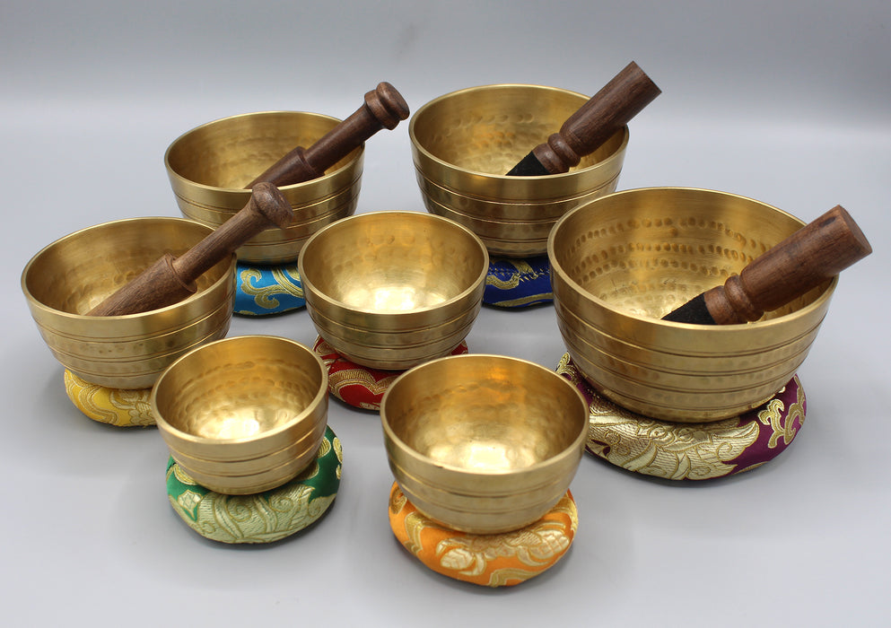 Set of Seven Hand Hammered Tibetan Singing Bowls