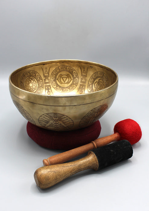 Seven Chakra Carved Meditation Tibetan Singing Bowl