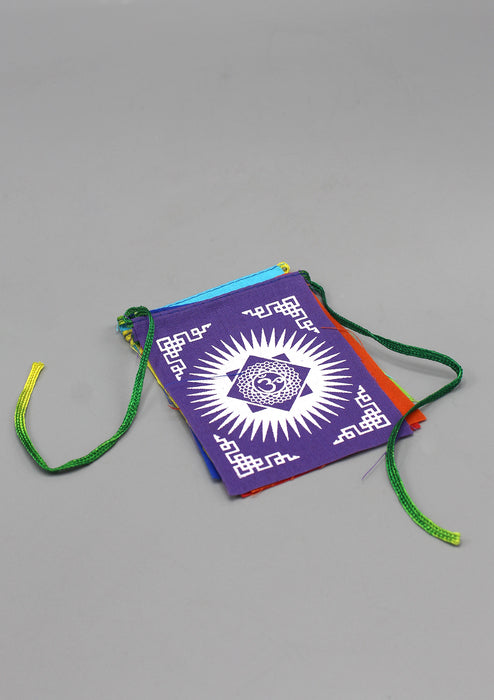 This seven chakra mini prayer flag is handmade in Nepal and it is made of cotton.