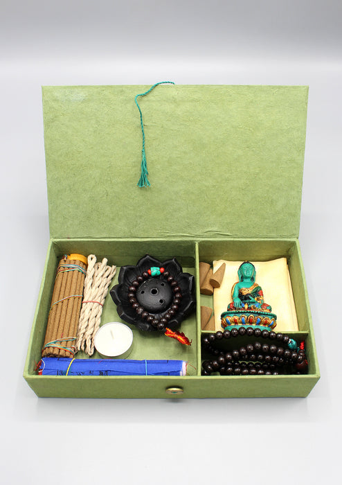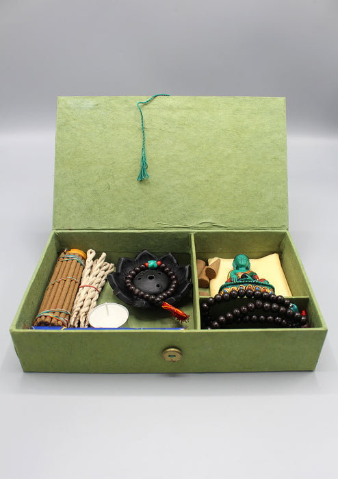 Shakyamuni Buddha Statue, Mala and Incense Buddhist Zen Gift Box