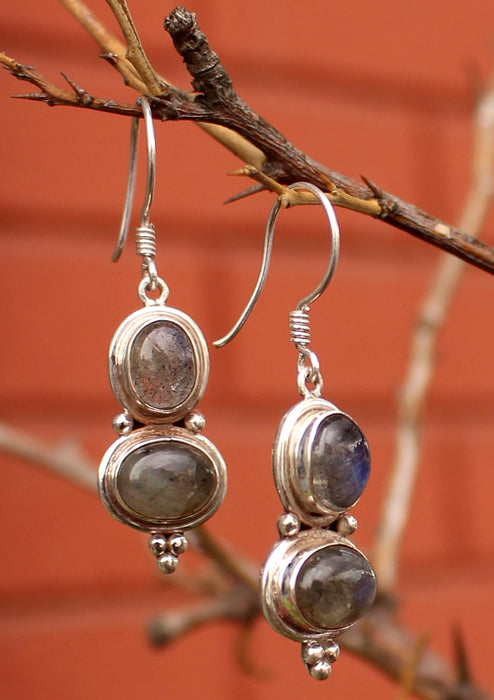 Shinning Labradorite Silver Sterling Double Drop Earrings