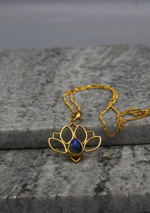 Shiny Moonstone inlaid Gold Plated Lotus Pendant