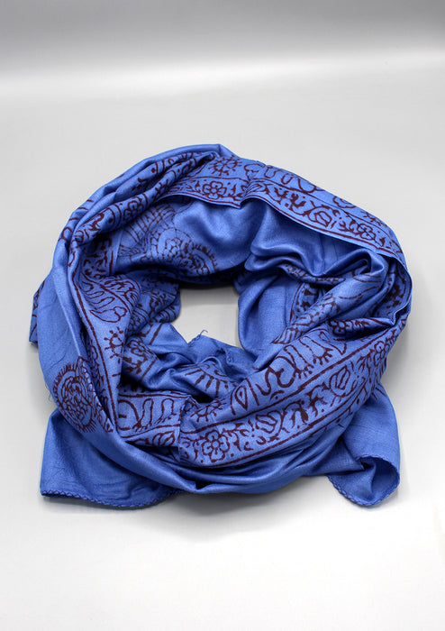 Very profoundly used by the Hindus during puja, meditation, yoga and religious activities, this iconic om scarf is hand printed with Om and Om mantra.