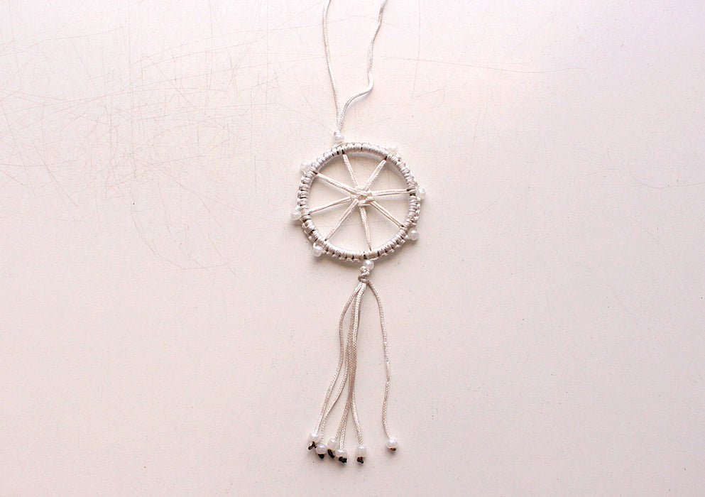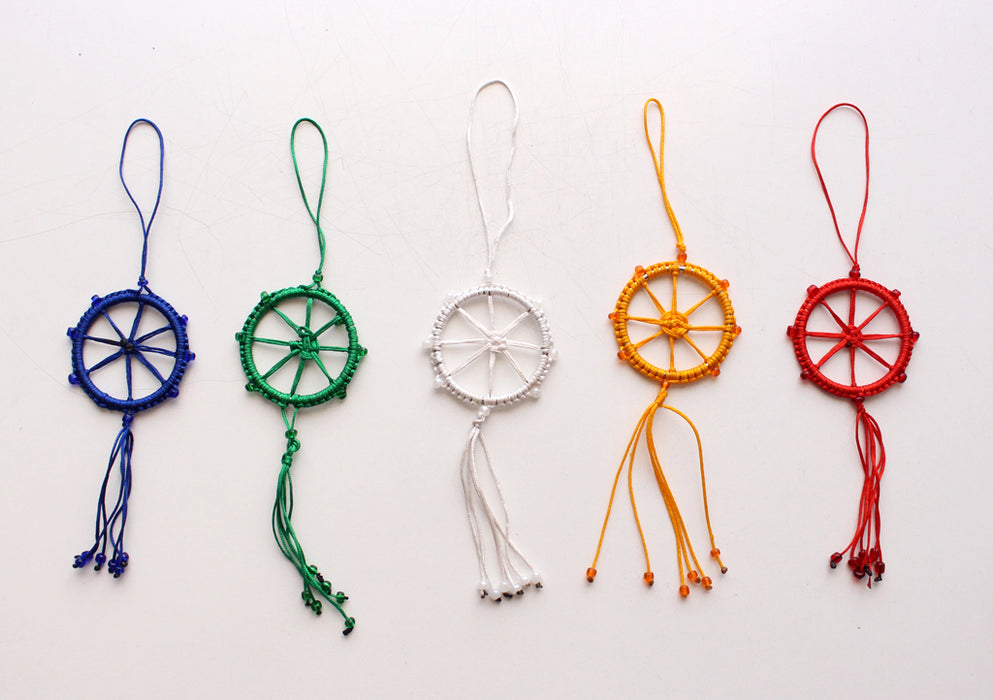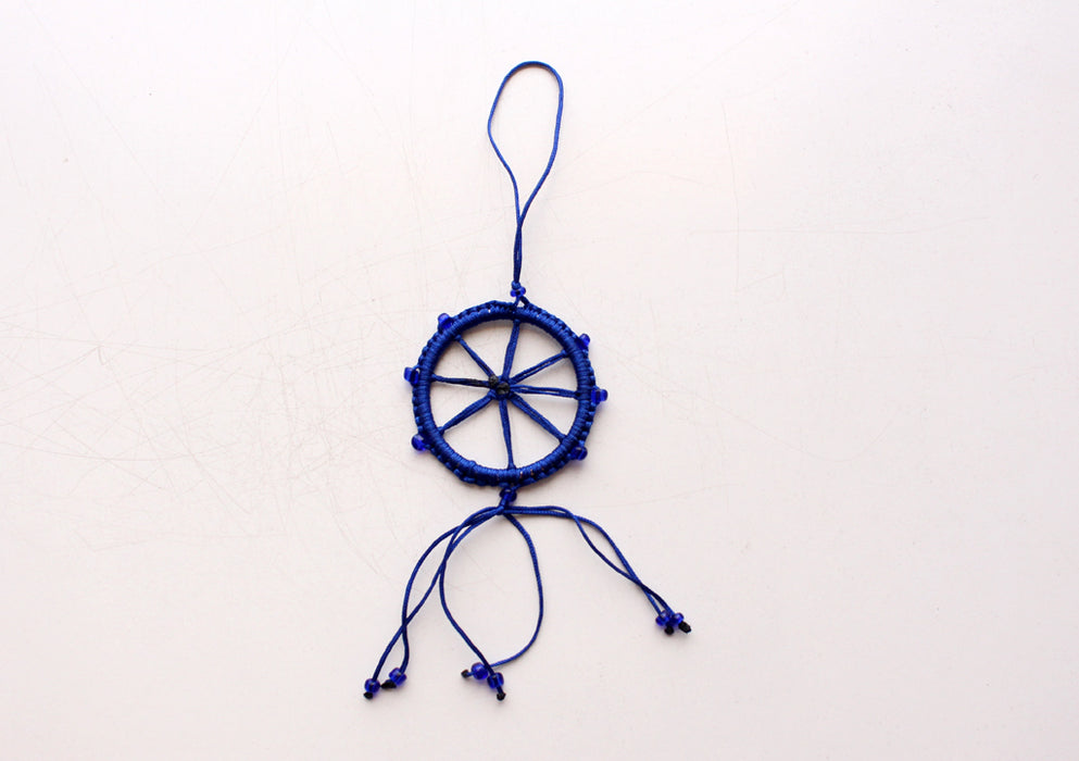 This is a very beautifully handmade nylon threaded car hanging from Nepal. The car hanging is decorated with glass beads and the center part is beautifully design in a wheel of life using nylon threads.