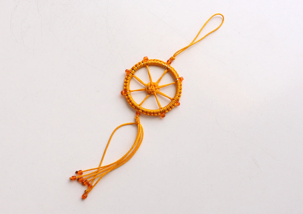 Small Dharmachakra Car Hanging Decorated with Glass Beads