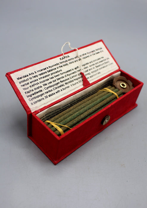 This is the smoke-therapy Lemon Grass Kapha incense made with a blend of special herbs and ayurvedic formula helps you to uplift, invigorate and stimulate the Kapha dosha. It has been formulated with various ayurvedic herbs, resins and essential oils along with Lemon Grass as the main ingredient that is known to revitalize the mind and body, improve concentration, and calm the mind. It also purifies the atmosphere and can act as an effective insect repellent. The incense also comes with a small wooden incense stick holder inside.