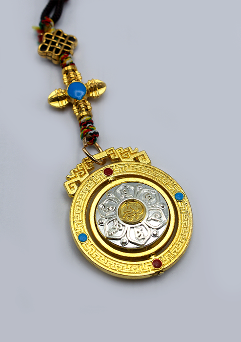 Spinning Om Mani Mantra Buddhist Golden Car Hanging