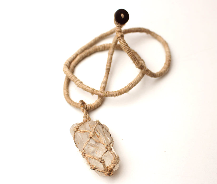 This is a Himalayan Raw Stone cut into the shape of traditional arrowhead or pointed shape netted with pure hemp thread. Traditionally worn for its natural elements, these stones are extracted from the foothills of Mount Everest.