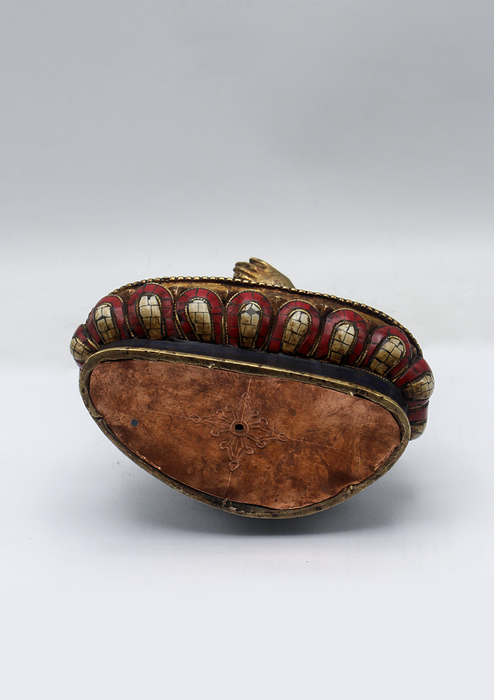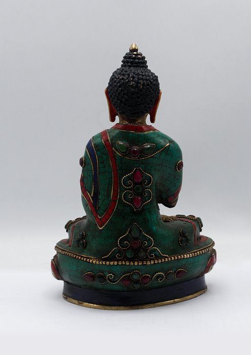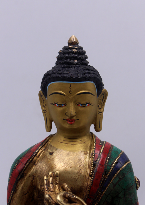 Stone Inlaid Copper Vairocana Buddha Statue 8.5"H