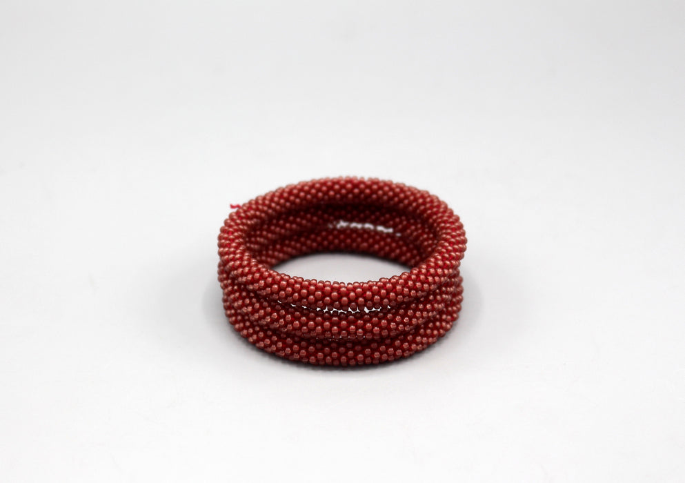Roll on bracelets are very popular among both men and women. These bracelets are trendy, easy to wear and always in fashion. These fairly traded glass beads bracelet are meticulously crocheted by our women artists. Our woman artist carefully hand-strung these Roll On bracelet to give them the best shape and design.