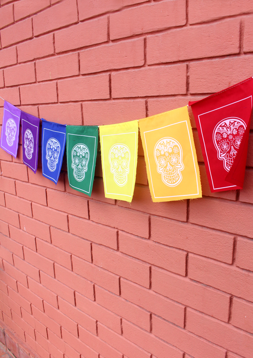 This prayer flags has 7 sheets and each flags are printed with a sugar skull.