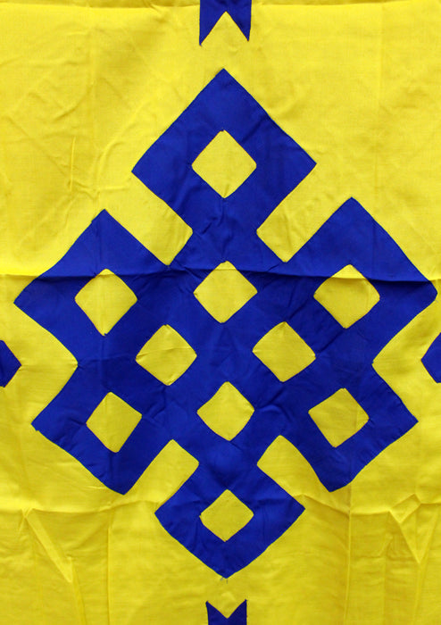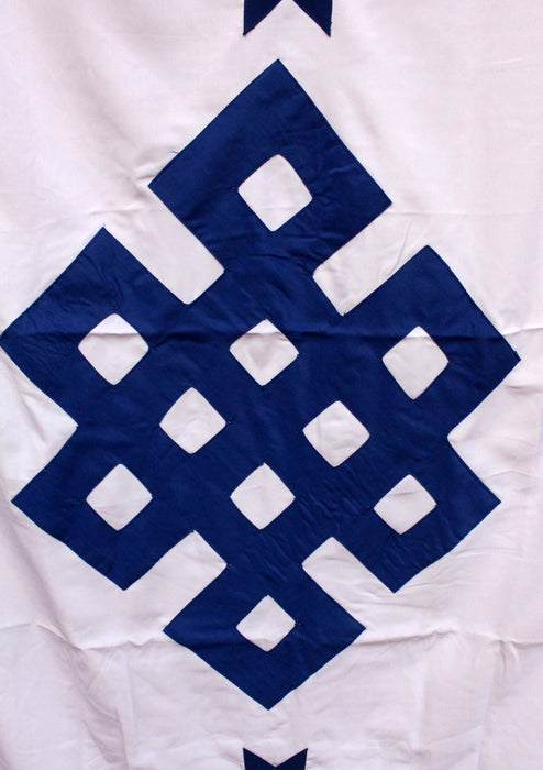 This door curtain is handmade in Nepal. These door curtains are found in many entrances of houses and temples in Nepal and Tibet. This is a gorgeous Cotton Tibetan Door Curtain which has a beautiful patchwork of Tibetan Auspicious Symbol Endless Knot.