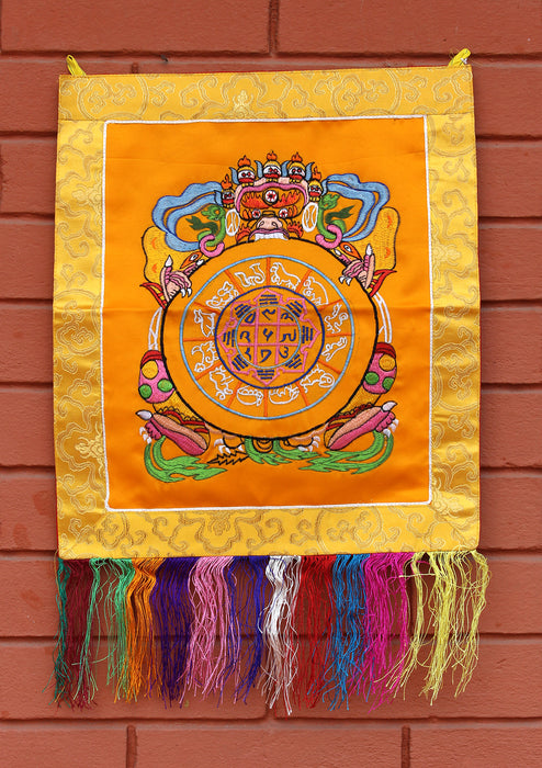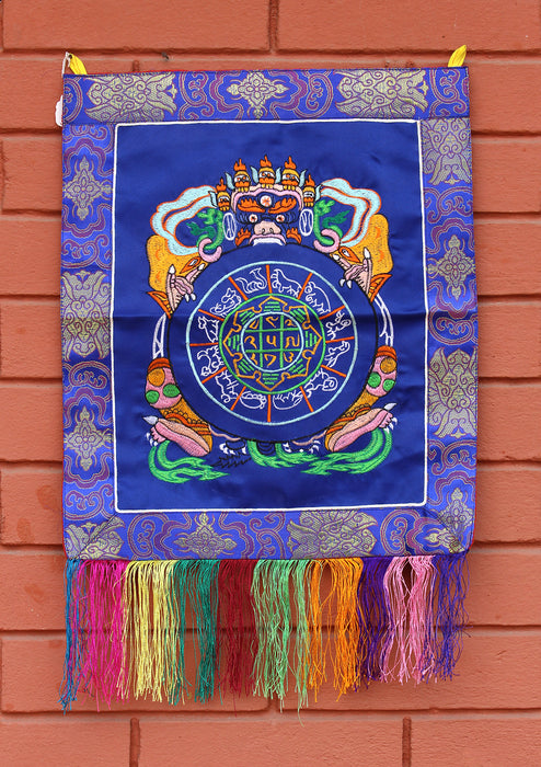 Tibetan Calendar Embroidery Brocade Framed Wall Hanging Banner