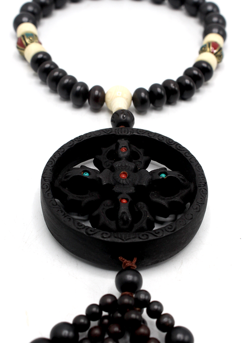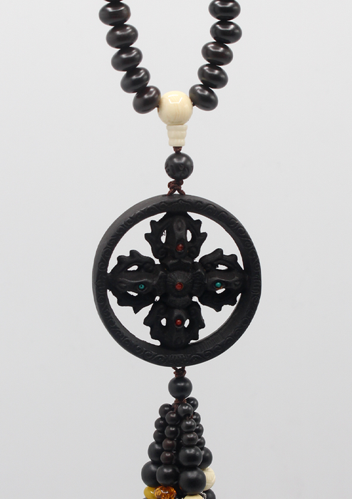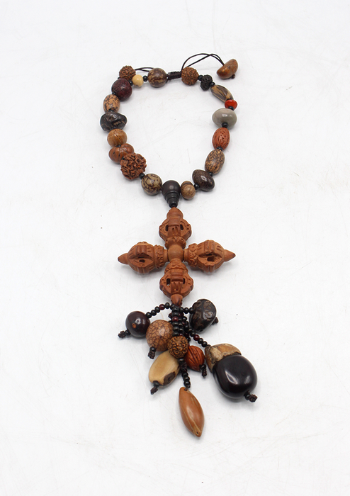 Tibetan Double Dorjee Carved Wooden Car Hanging Amulet